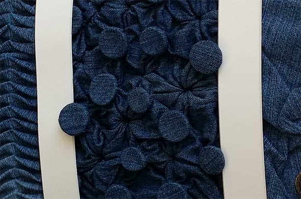 ...richtige Kunstobjekte. Sie verwendeten alte Jeans und bezogen Knöpfe, gestalteten Raffungen und extravagante Kreationen. Sie nähten und tifftelten für richtige coole Looks und was meint ihr? Es sind doch richtig tolle Stoffoberflächen entstanden. Schon verspürt man selbst ein Kribbeln in den Nähfingern, oder? Na dann, holt gleich eure PFAFF® Nähmaschine hervor, sucht nach Stoffresten und interessanten Nähaccessoires und los kann es gehen! Übrigens, die kleinen Meisterwerke haben die jungen Teens anschließend in einen Bilderrahmen eingelegt und ich finde, es sind richtig coole Eyecatcher geworden.