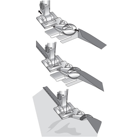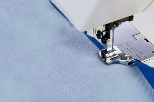 Nicht jeder hat diesen nützlichen Begleiter gleich von Anfang an auf seinem Nähtisch. Hier ein Nähfuß, der trotzdem viel Arbeit beim Versäumen spart.
