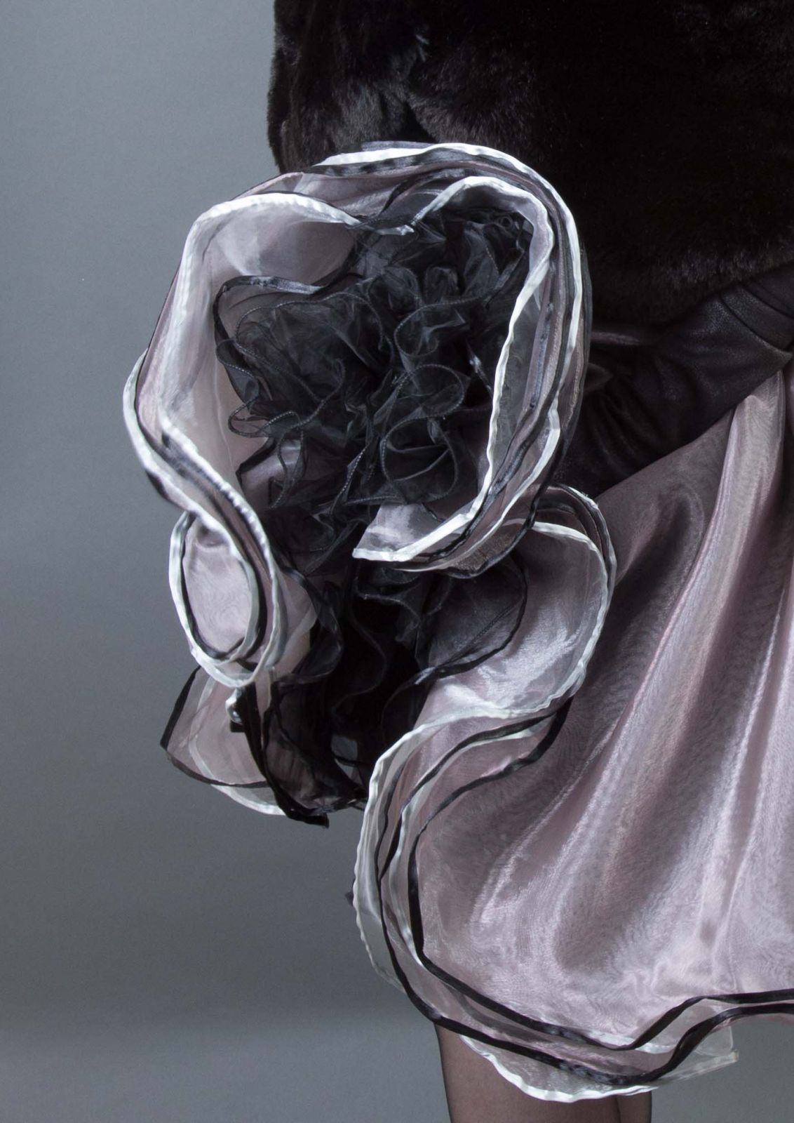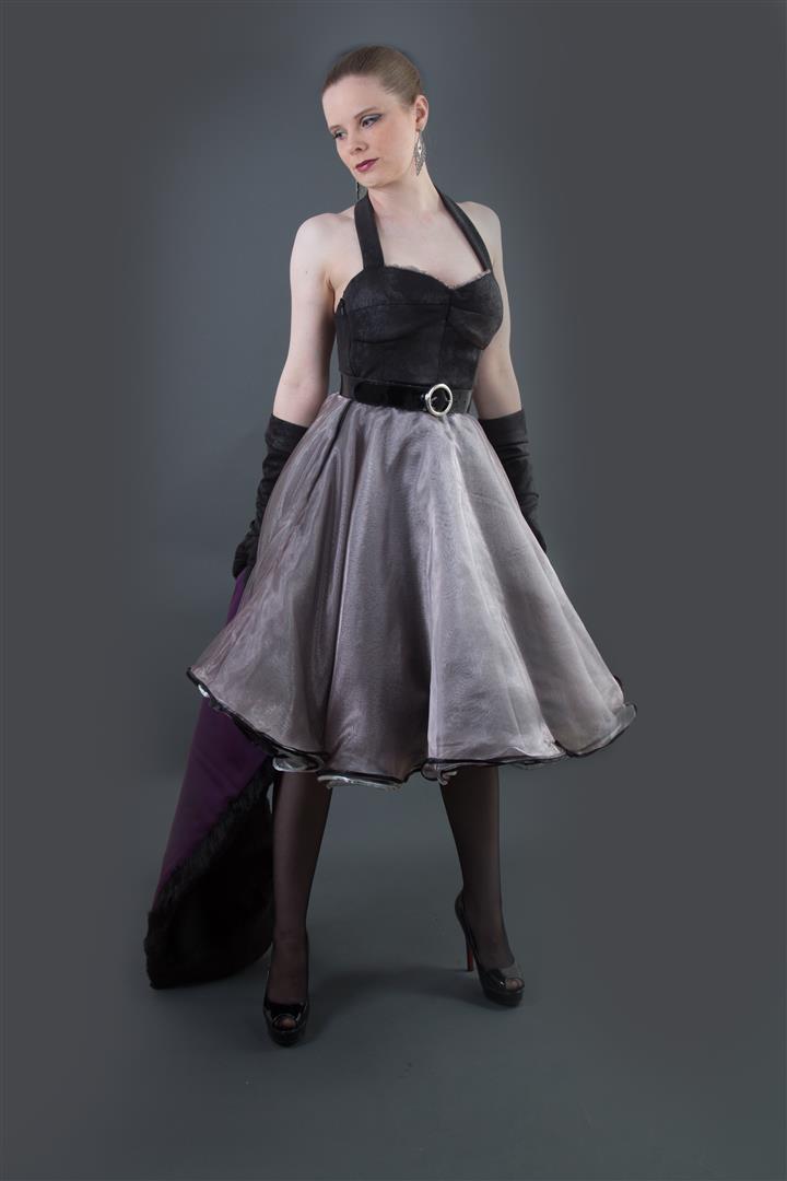 Auf dem Bild seht ihr ein Cocktailkleid das mit einem zehn lagigen Organza Rock gearbeitet wurde. Ich habe einfach mit dem Schägbandeinfasser die einzelnen Schichten eingefasst (Das wechseln der Schrägbandfarben bracht zusätzlich Bewegung in den Rock). Ich hatte richtig Spaß beim Umnähen der Röcke, obwohl das mit einem normalen Nähfuß wohl anders gewesen wäre. Ich werde bald noch ein paar Techniken vorstellen, die unsere Nähwerke auch ohne Ovi wunderbar schmücken.