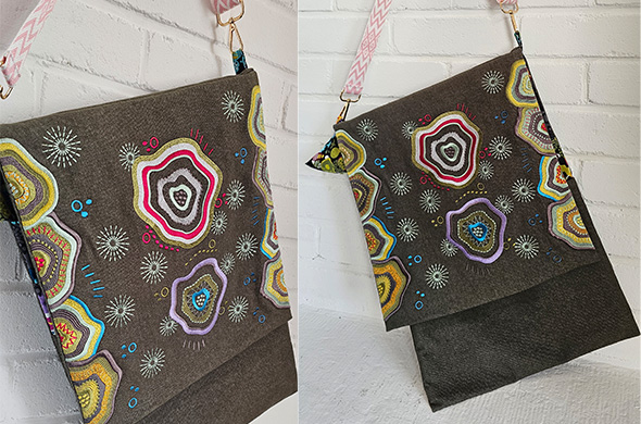 Du kannst den Organizer aus Baumwollstoffen nach Anleitung nähen und /oder die Klappe individuell besticken.
