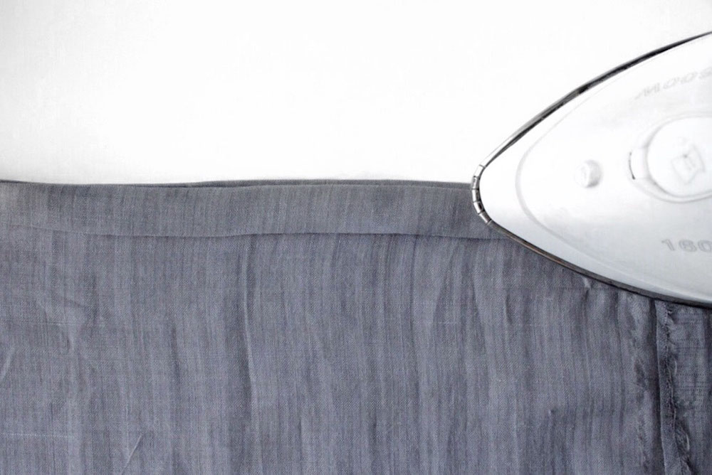 8. Bügel den Saum 2x 1 cm um.
