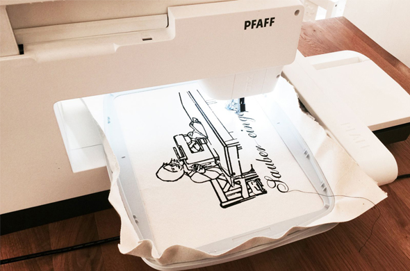 Ich habe das Glück, die Pfaff Creative 4.0 mit Stickaggreagt und der TrueEmbroidery Stick-Software zu besitzen, die eigene Motive in Stickbilder umwandeln kann. Bevor es mit dem Sticken losging, musste ich das Foto mit einem Fotobearbeitungsprogramm stark bearbeiten und auch das Stickmotiv bedurfte einiger Korrekturen, aber dann war es geschafft und ich war so zufrieden mit dem Stickbildergebnis, dass ich es in eine neue Tasche verarbeiten konnte.