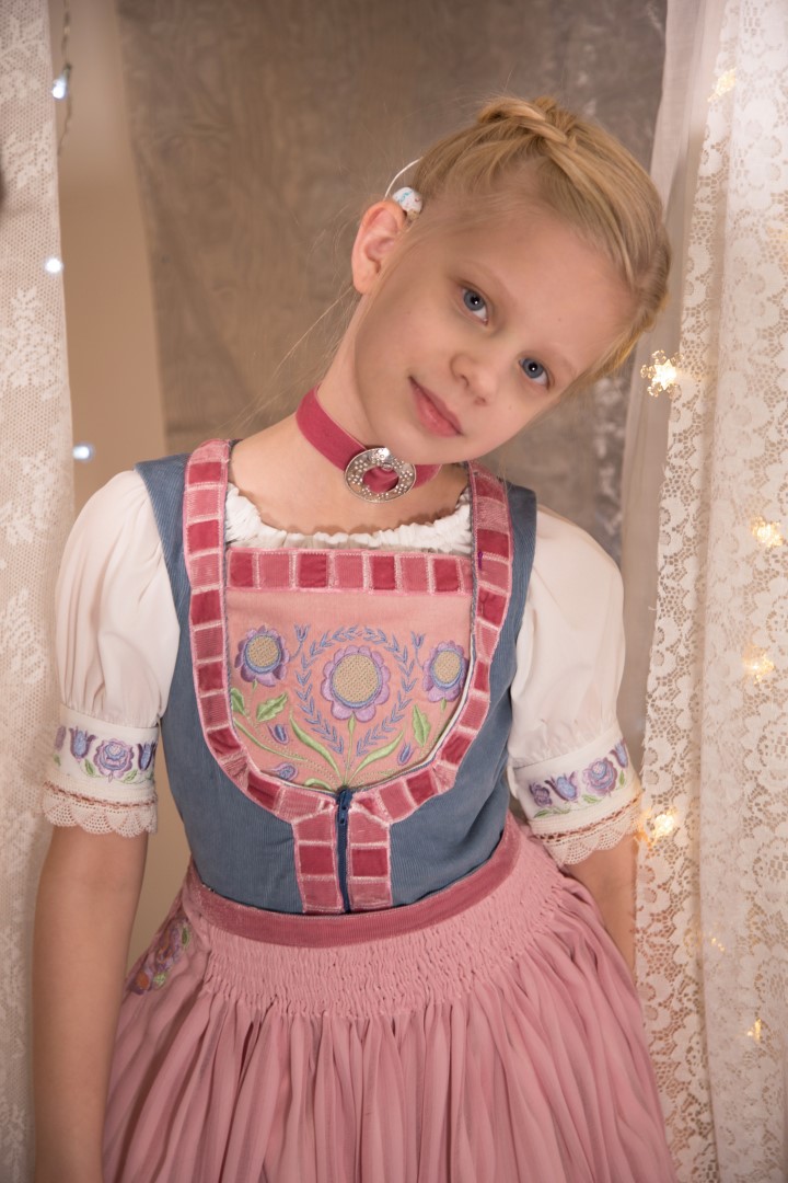 Die Röcke und Schürzten sind gesmokt und zum Teil mit Stoffstickerei verziert.