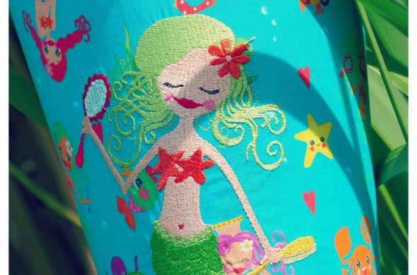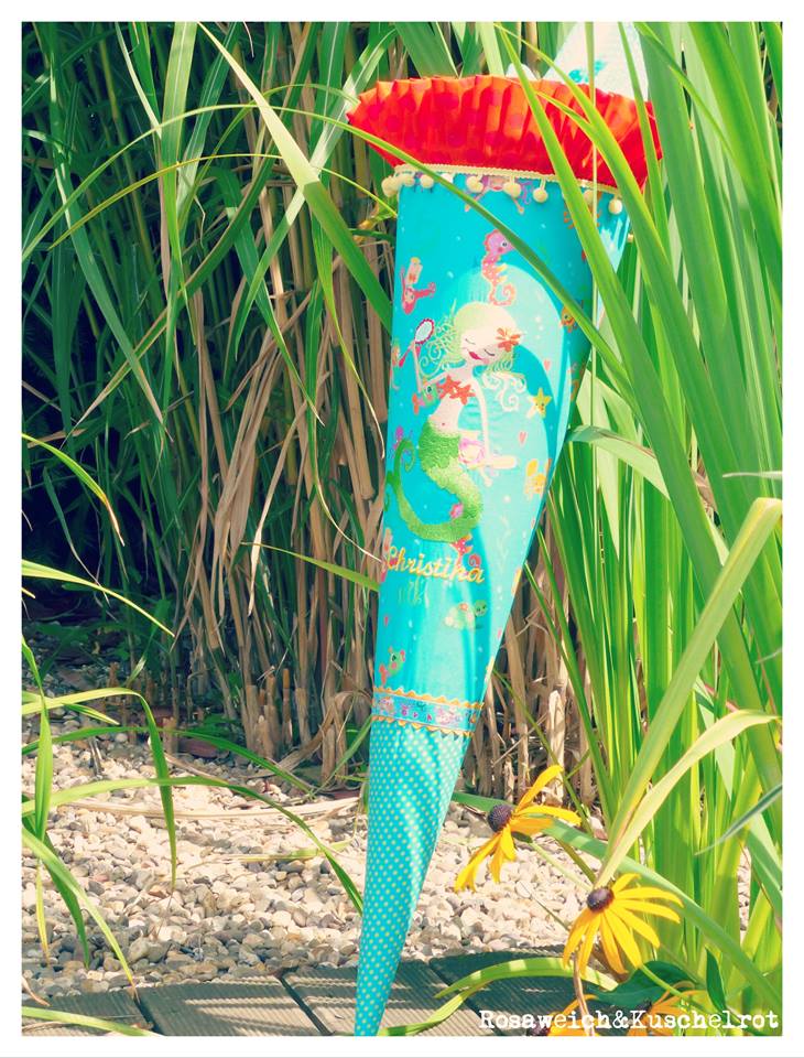 Und da ich die Motive von Zwergenschön so liebe und auch noch 2 unterschiedliche Stöffchen passend dazu hier hatte, entstand eine Meerjungfrau und eine Dornröschen Schultüte.“