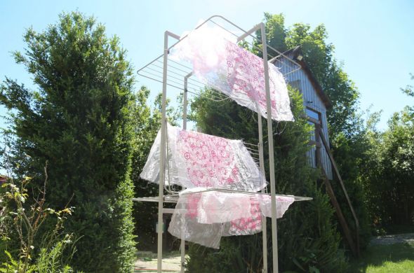 Die Motive habe ich mit etwas reduzierter Geschwindigkeit gestickt. So musste ich nur mal den Faden wechseln oder neuen Stoff einlegen. Heute trockneten die fertigen Spitzen dann in der Sonne und bald zeige ich hier das fertige Kleid. Bis dahin frohes Sonnen!