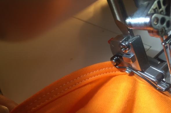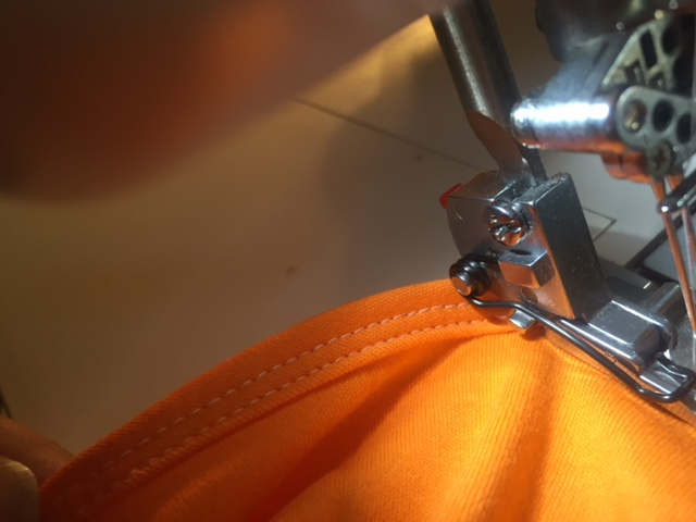Schritt 1: Als erstes bereitet ihr eure Coverlook auf den Coverstich vor. Näht sicherheitshalber eine Probenaht. Ist die Probenaht ok, dann kann es losgehen.
