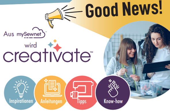 wir freuen uns, dir eine spannende Neuheit vorstellen zu dürfen: Aus mySewnet™ wurde CREATIVATE™ – eine kreative Plattform, die mehr ist als nur ein neuer Name. Mit CREATIVATE™ starten wir in eine neue Ära der digitalen, kreativen Vernetzung, Benutzerfreundlichkeit und kreativen Vielfalt. Es gibt viele digitale Plattformen aber nur eine, die so vieles abdeckt wie CREATIVATE™.