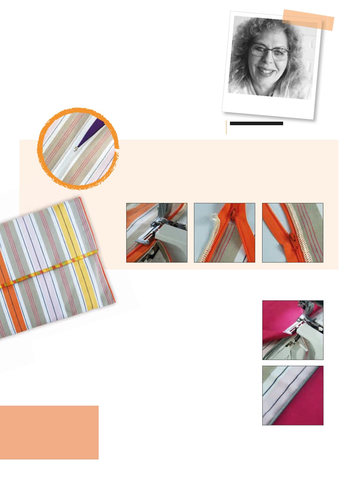 des Paspelfußes liegt. Nähen Sie so den Reißverschluss auf beiden Seiten mit der Flatlock-